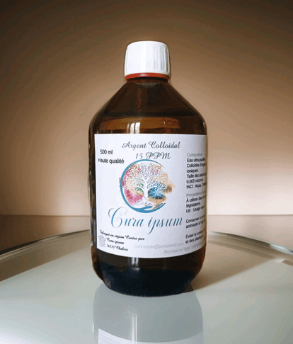 - Argent colloïdal (15 ppm, obtenu par électrolyse d’argent pur 99,99 %)