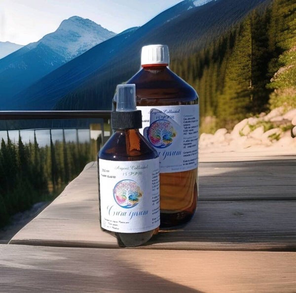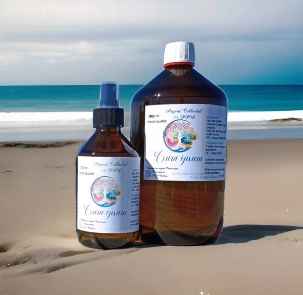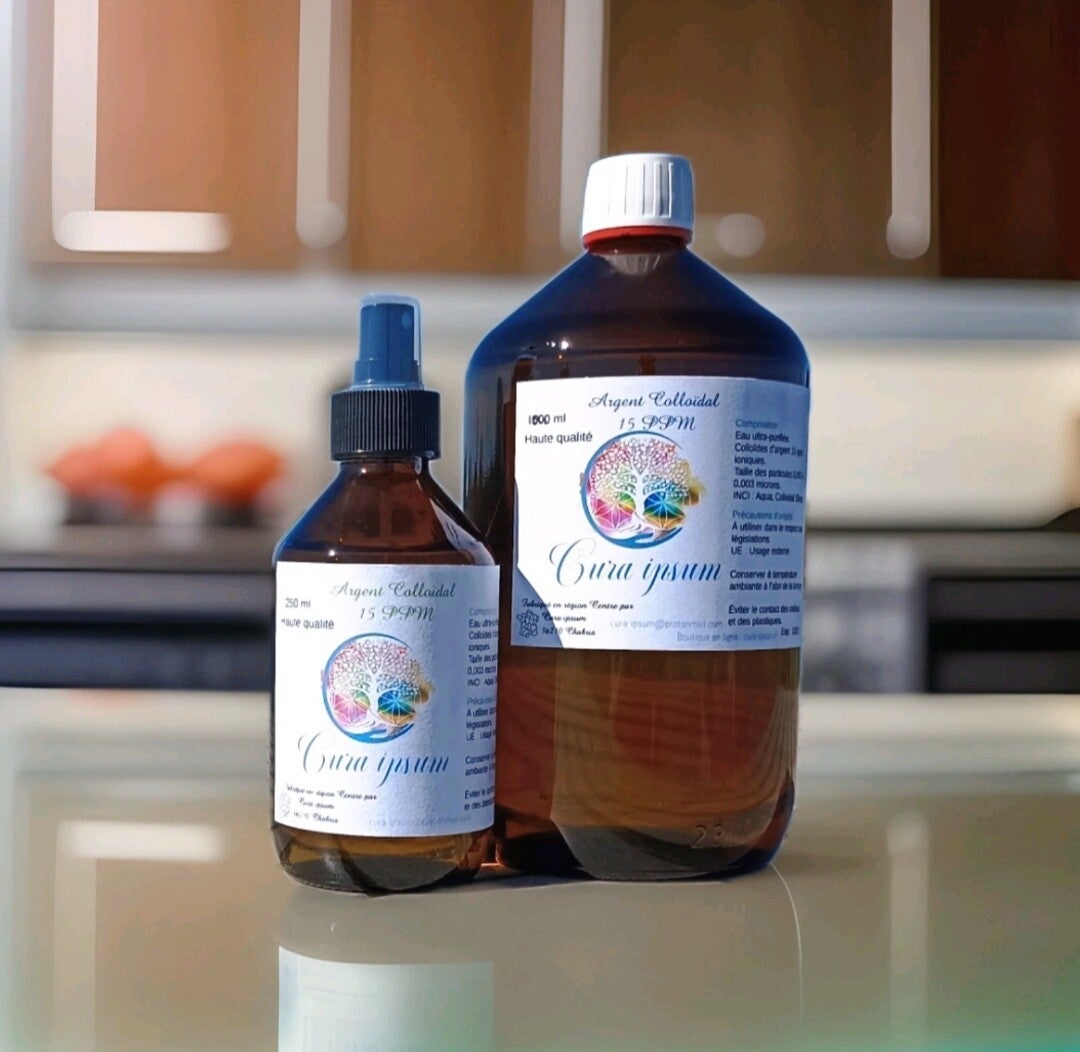 Argent colloïdal 15ppm - Lot: 1 litre + 250 ml spray - Haute qualité - Cura ipsum